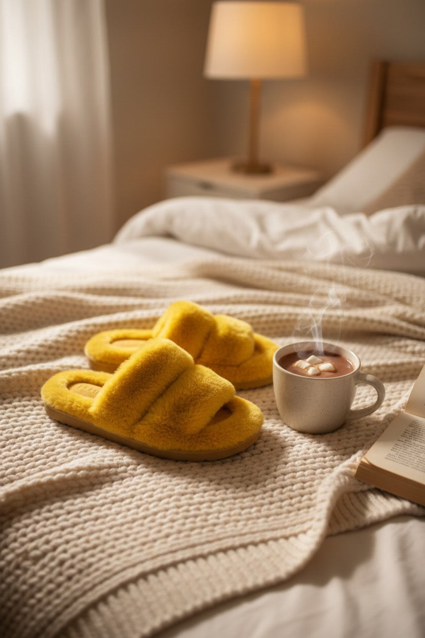 Chaussons femme jaunes – doux, chauds et confortables
