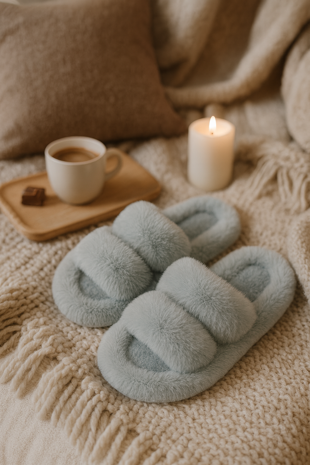 Chaussons femme bleu ciel – doux, chauds et cocooning