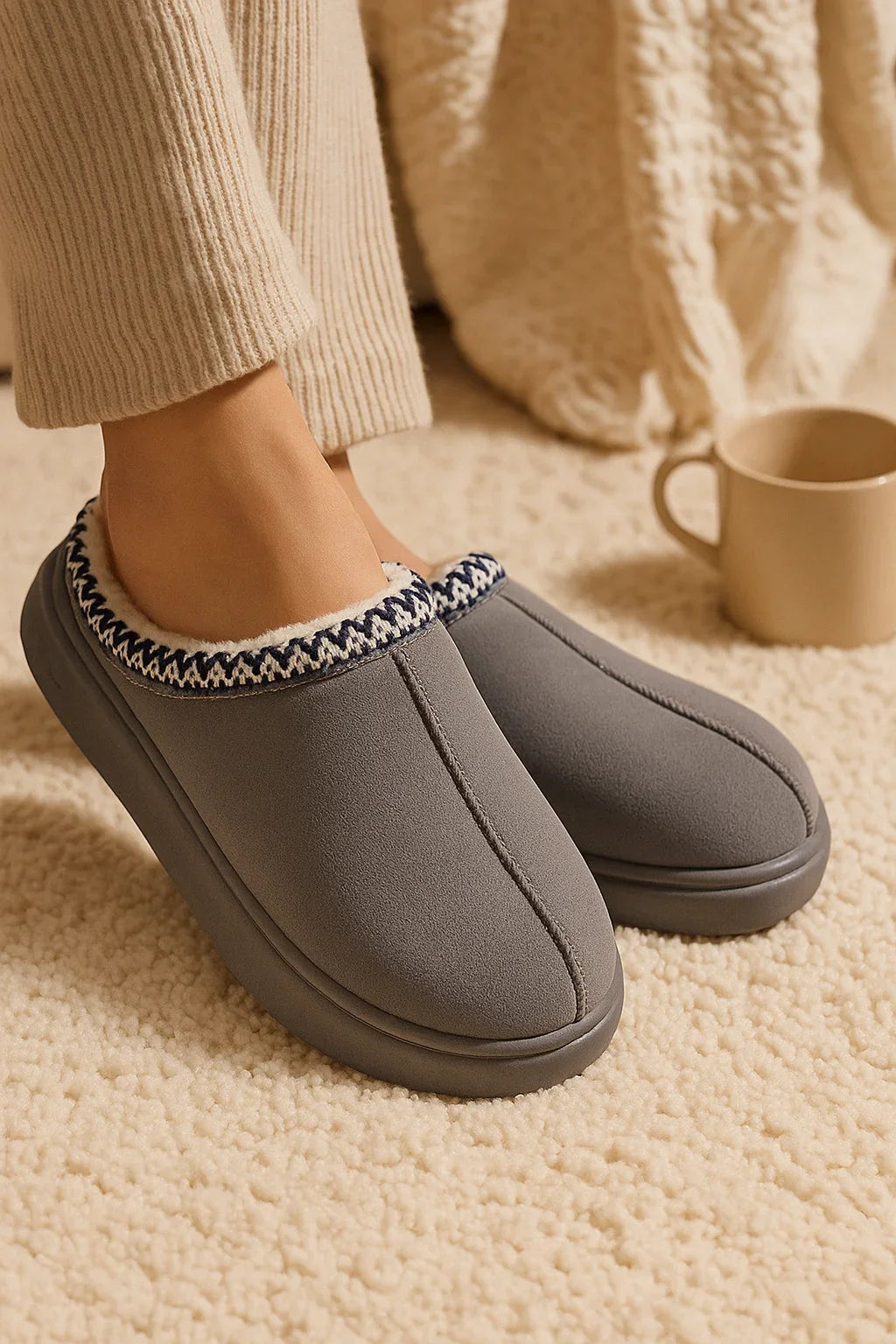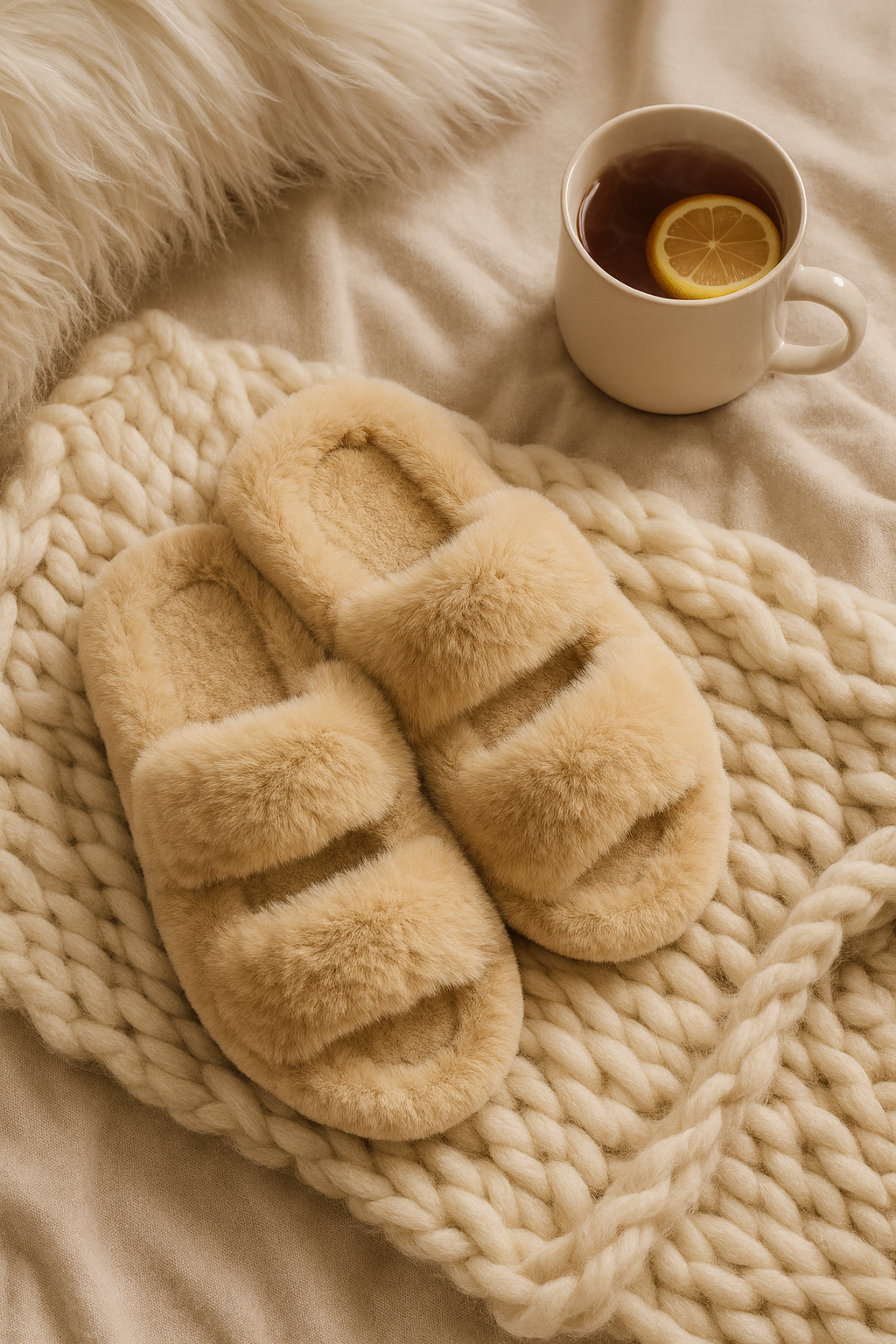 Chaussons femme hiver beige — Ultra doux & chaleur cocooning