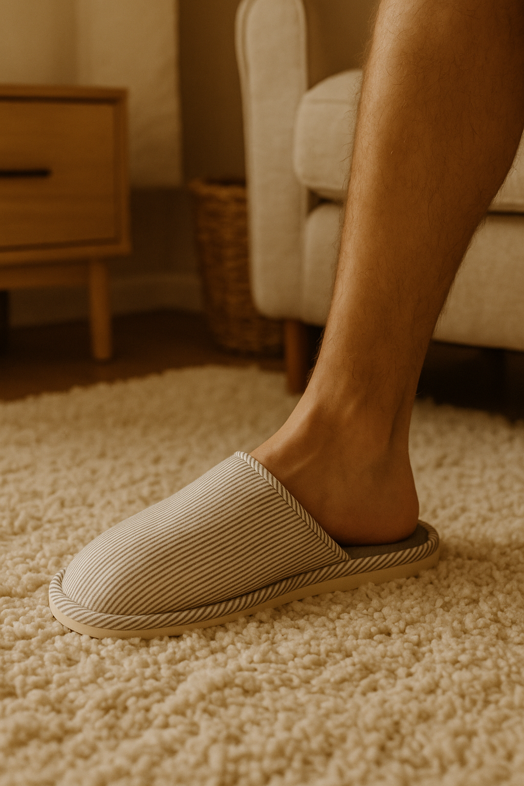 Chaussons homme blancs rayures fines grises – doux et confortables