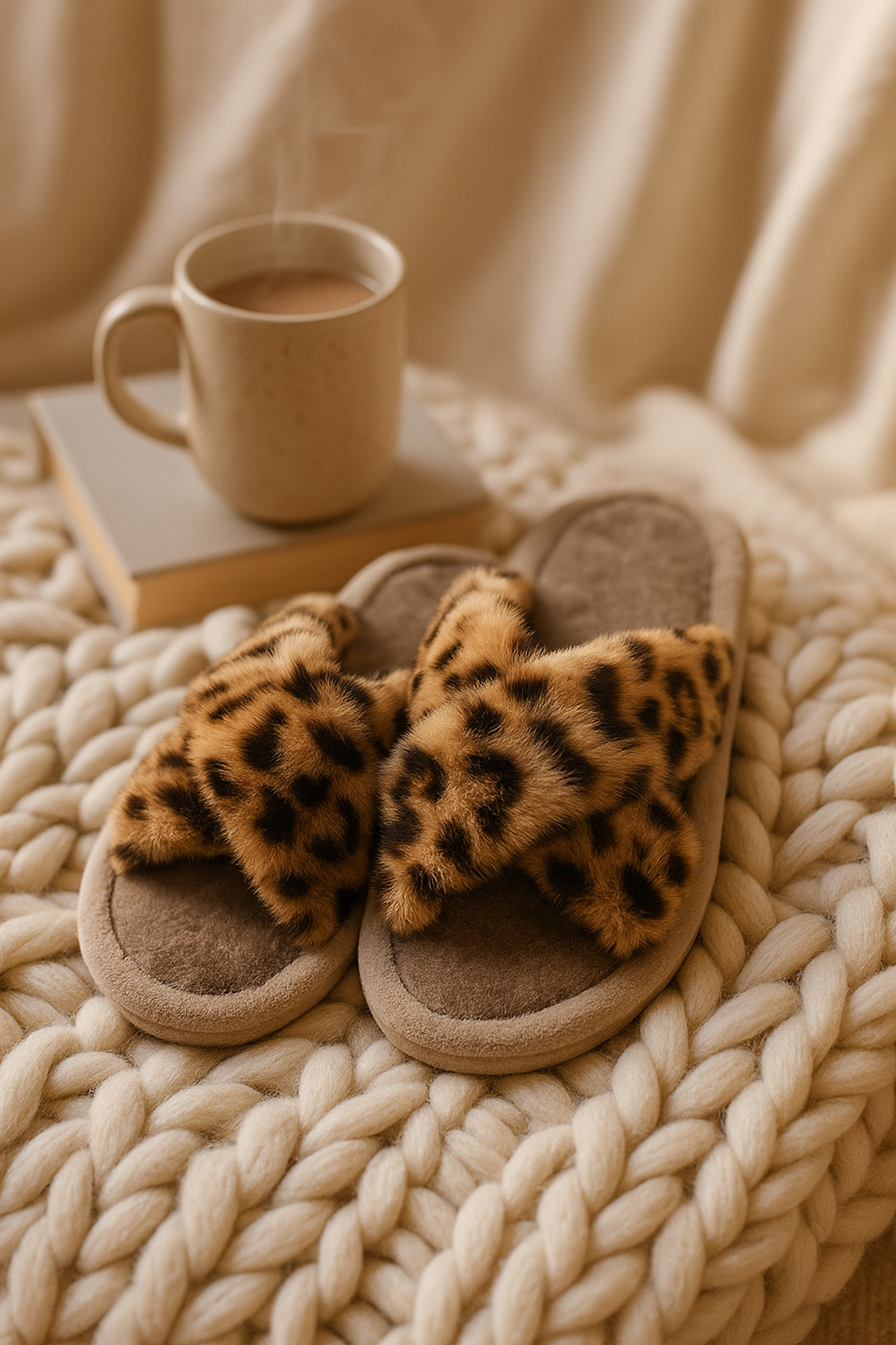 Chaussons femme léopard Camel – doux, chauds et confortables