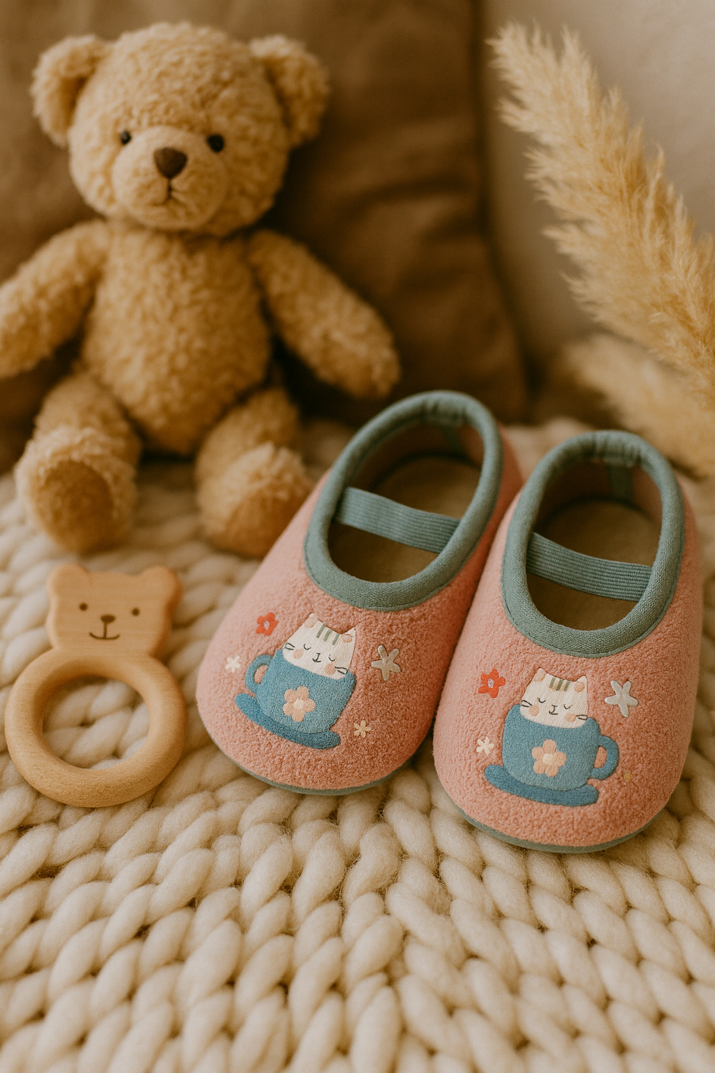 Chaussons bébé roses – souples, légers et parfaits pour les premiers pas