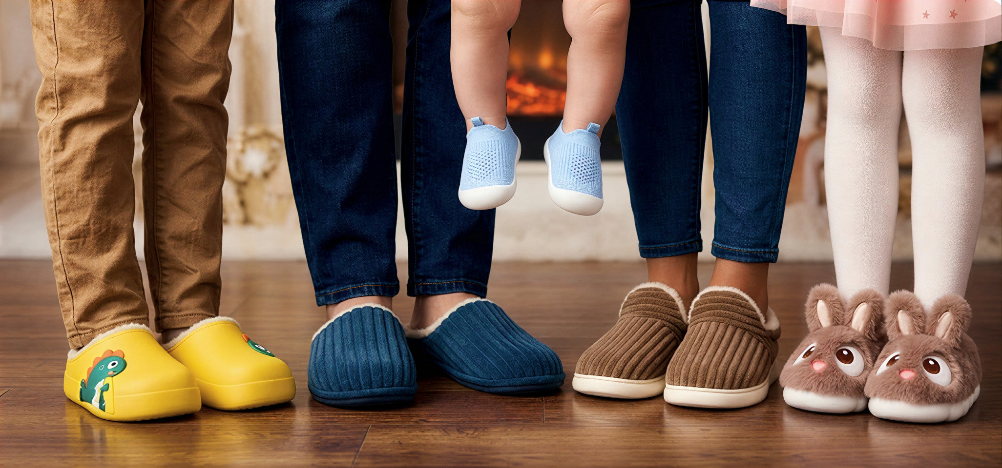 Chaussons confortables pour femme, homme et bébé.