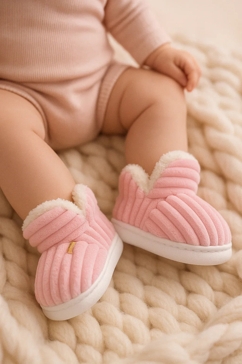 Chaussons bébé roses montants – souples, confortables et chauds
