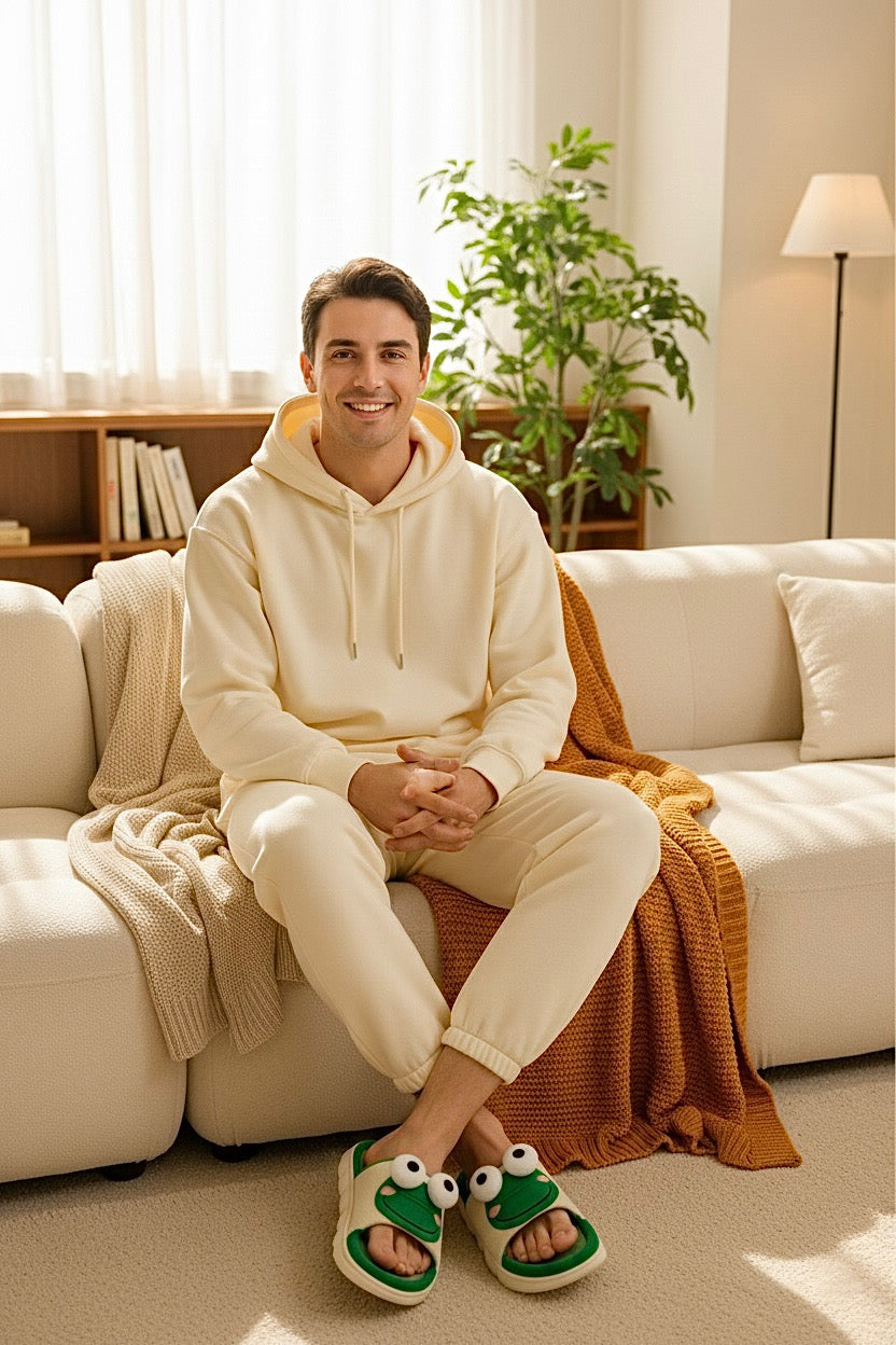 Chaussons homme verts grenouille – doux, chauds et confortables